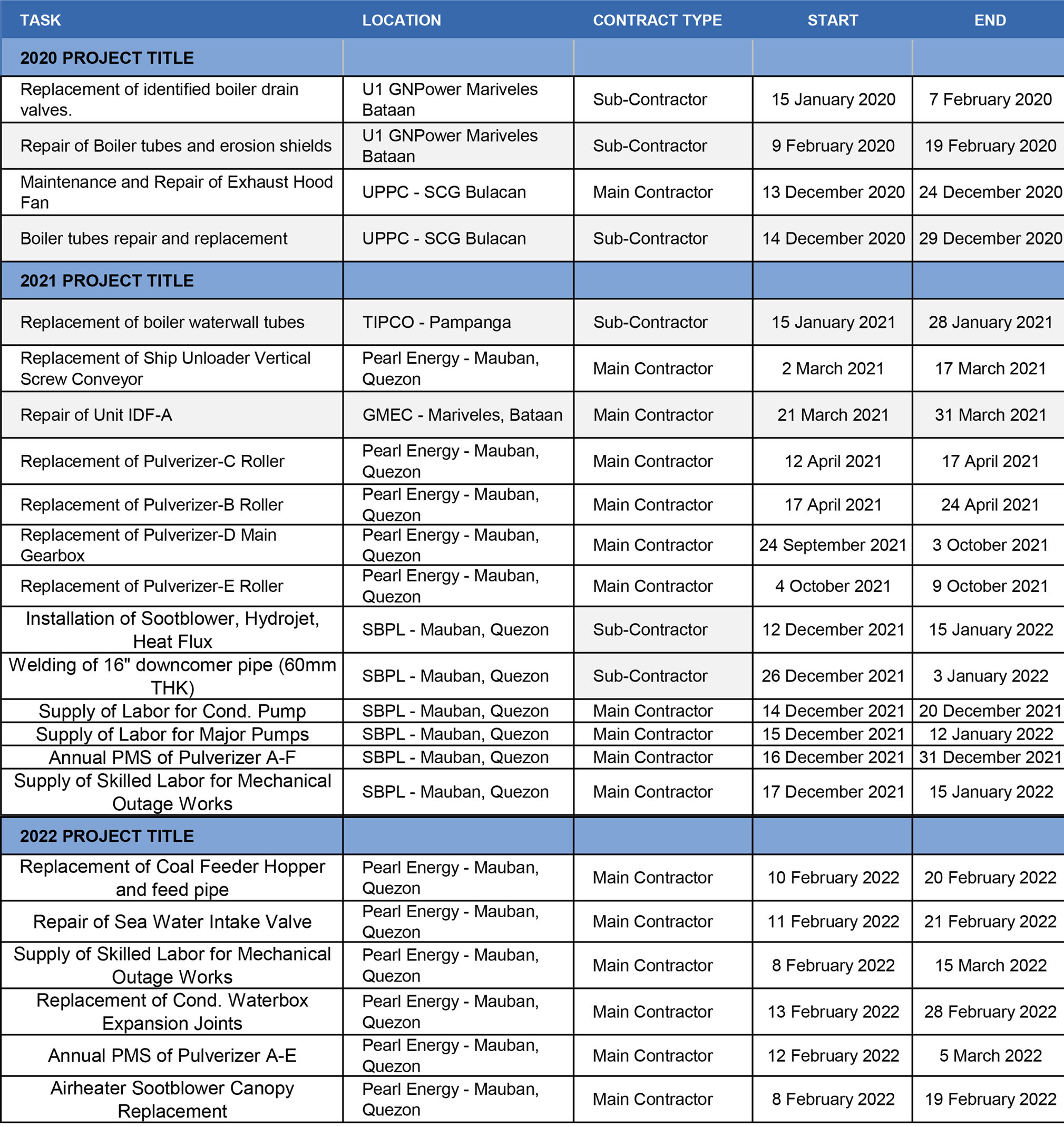 - We also have experiences working in turbine maintenance and overhauling as manpower supply.